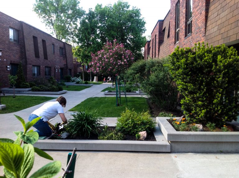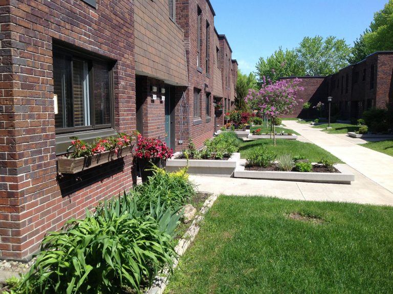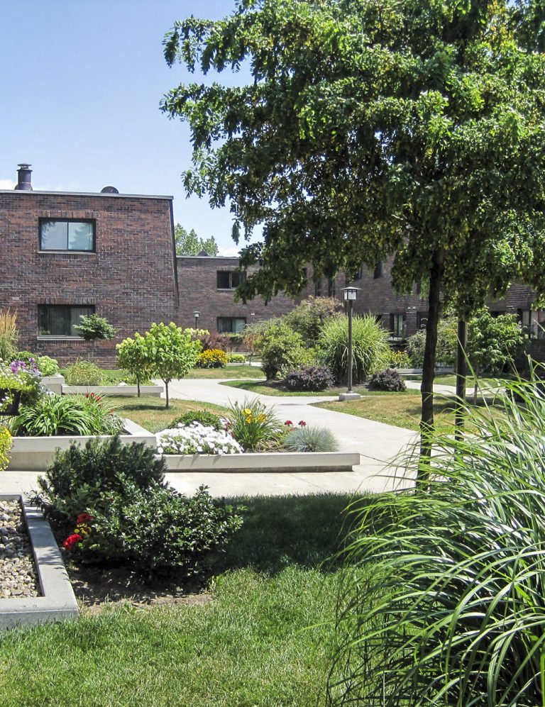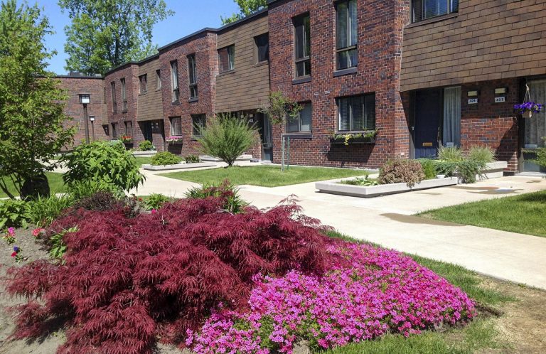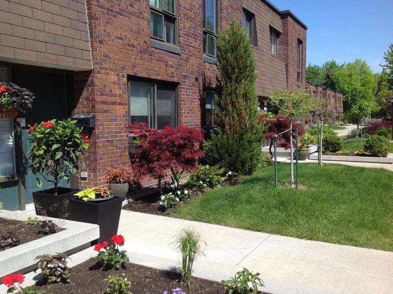 Terrasse Neufchatel regroupe 163 copropriétaires de maisons de ville, échelonnées sur six Places, à travers la verdure et traversées de sentiers piétonniers, à Saint Lambert.